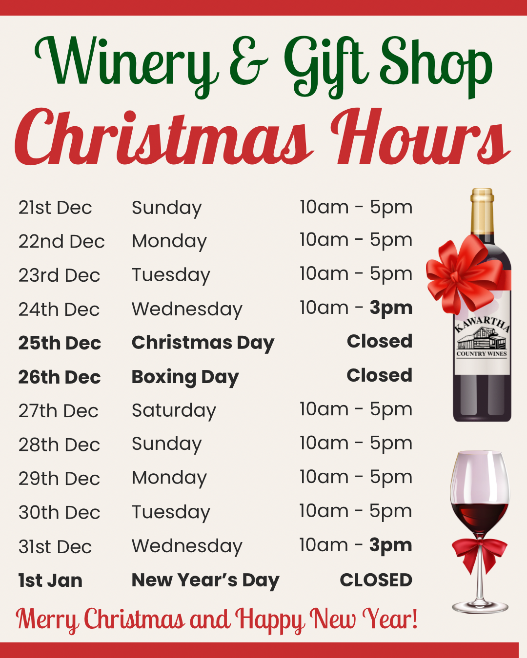 HOLIDAY HOURS!