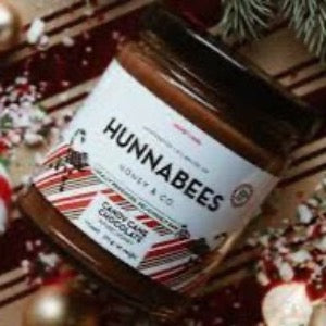 CHOCOLATE HONEY INFUSED WITH CRUSHED CANDY CANE THROUGHOUT, AND TOPPED WITH A HANDMADE CHOCOLATE BARK, SWIRLED WITH WHITE CHOCOLATE AND CANDY CANE.